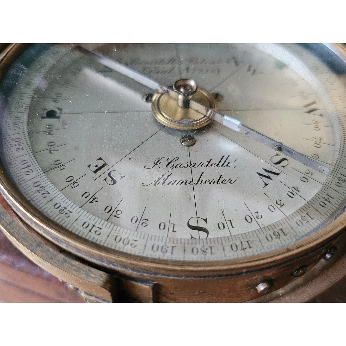 Antique 'Joseph Casartelli' Gimballed Brass Miners Compass, Manchester c.1880s