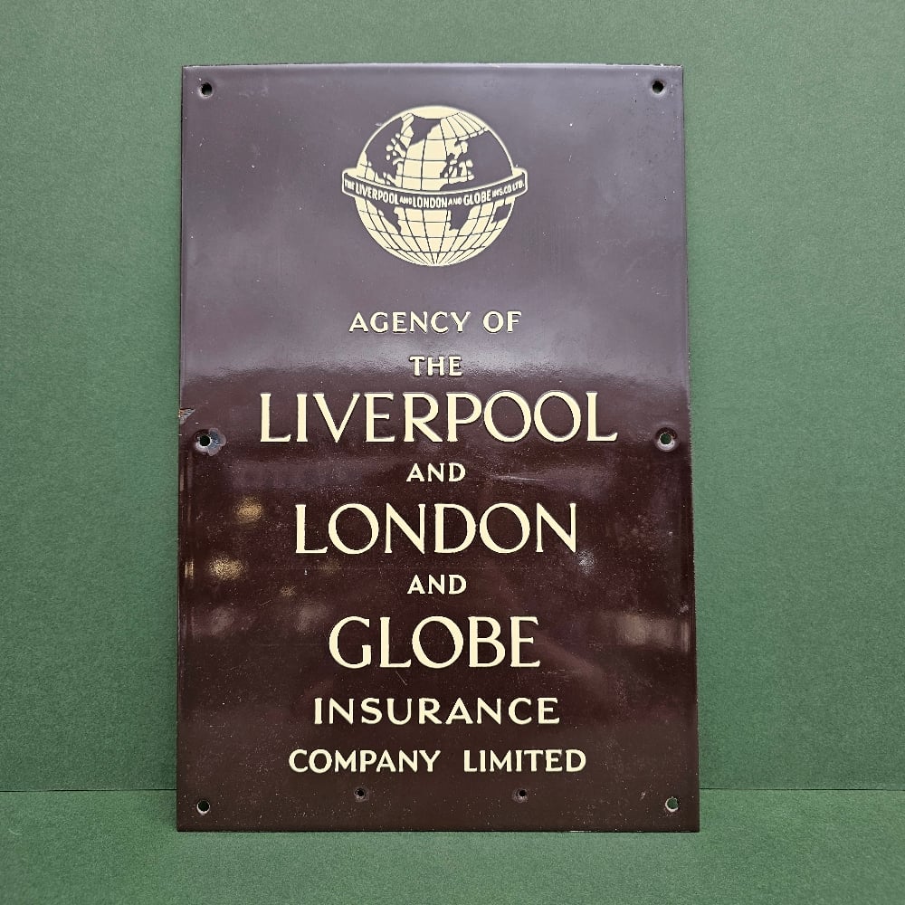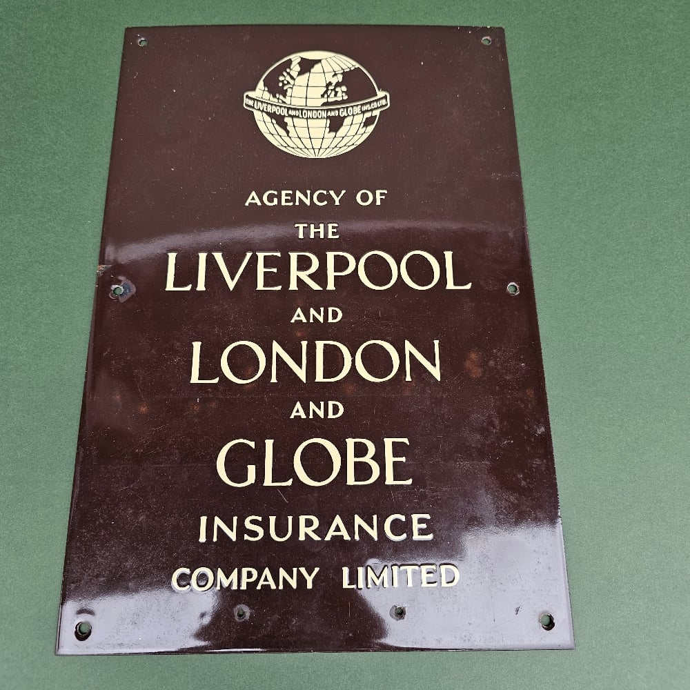 Original Antique Enamel Liverpool & London Globe Insurance Company Sign
